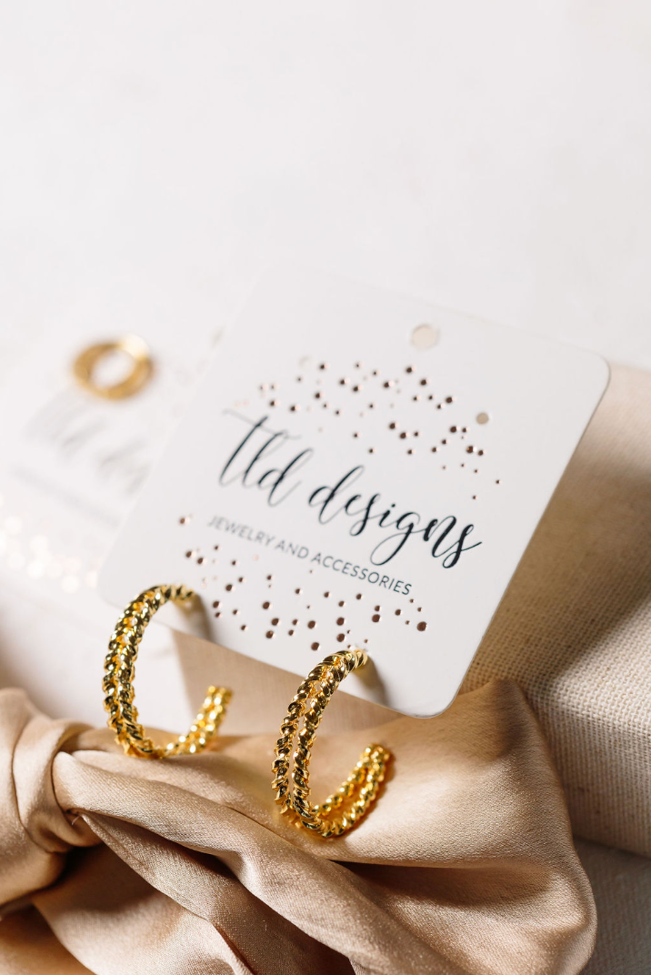 Immerse yourself in the allure of TLD Designs' Braided Doubles. These gold-plated hoops embody the essence of modern style and timeless elegance. Meticulously designed for those who appreciate uniqueness and emerging trends, these hoop earrings make a bold statement. The simplicity of their design, coupled with the rich gold plating, makes them an ideal accessory for any outfit. Elevate your jewelry collection with TLD Designs' Braided Doubles, a true reflection of artistry and craftsmanship.