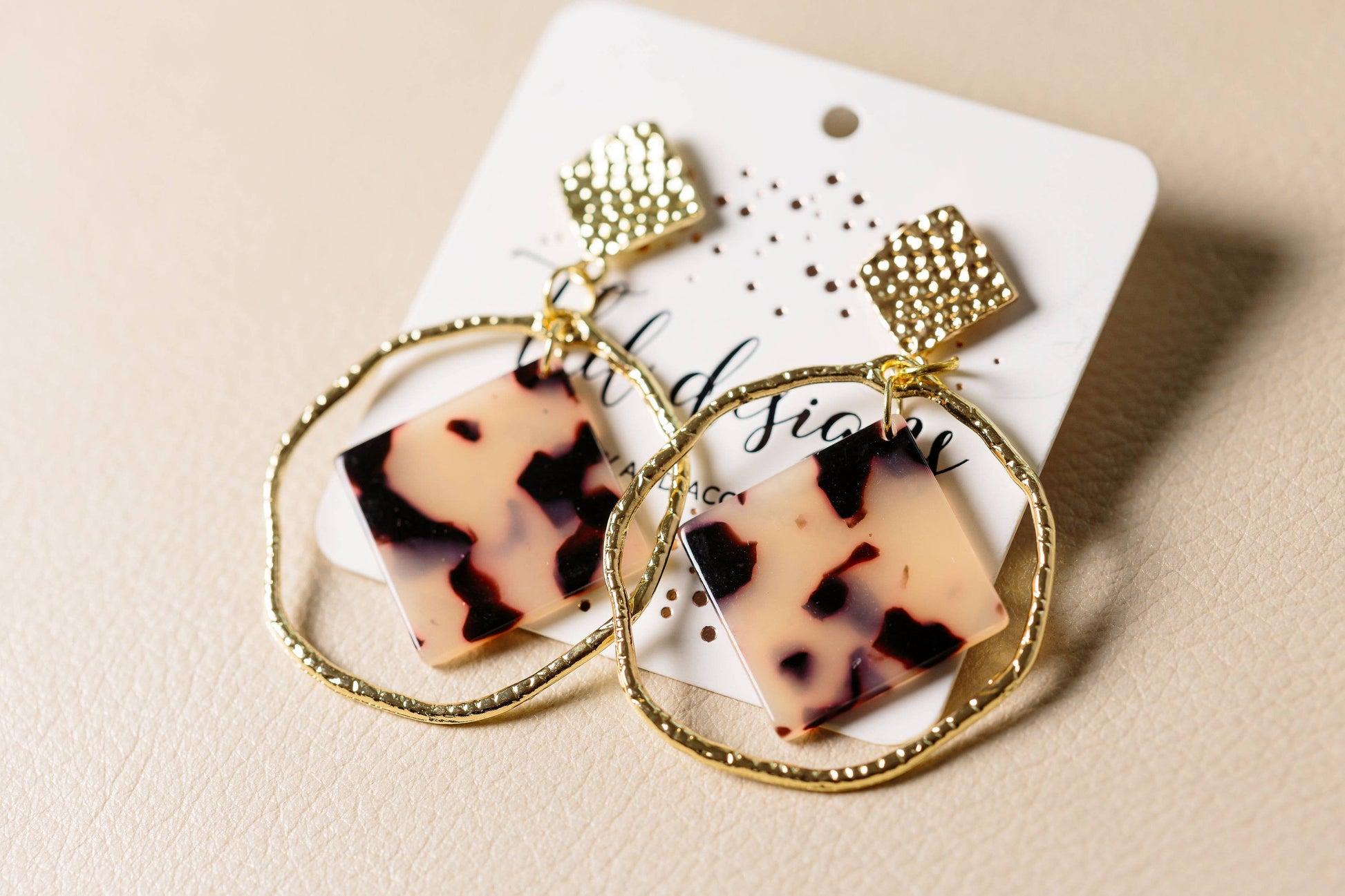 Gold post with brown and tan acrylic 2 inch drop.