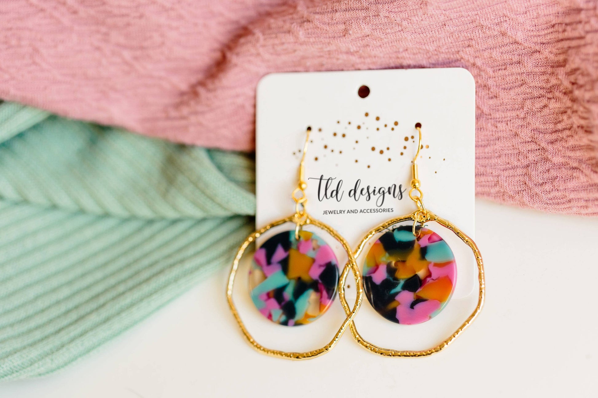 Experience a splash of color and a touch of gold with TLD Designs' Punchy Rounds. As part of our Dangle Earrings collection, these pieces embody the vibrancy of multicolor elements complemented by gold accents. These earrings are a testament to our commitment to emerging trends and unique styles. They are a perfect addition to any jewelry collection, promising to add a punch of color to any outfit.